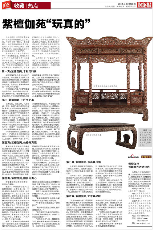 《法制晚報》宣傳推廣紫檀伽苑精品家具