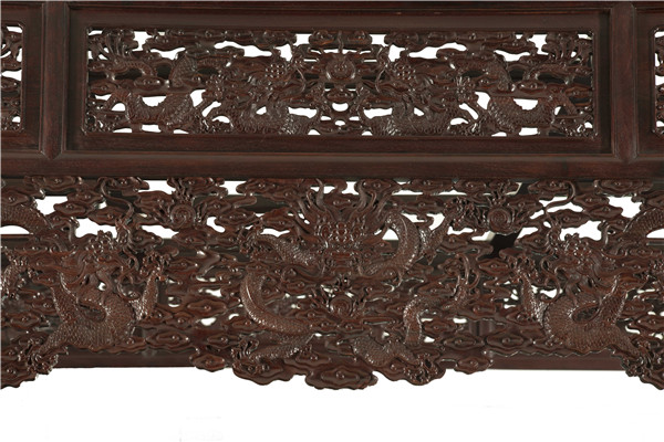 雕刻首先是打坯。根據(jù)樣稿雕刻出雛形,要求要有層次感和立體感,掏、凹、拐、抹,要掌握紋理,尊敬木性,打坯細膩;然后是上細活,由手藝高超的雕刻技師在打坯的基礎(chǔ)上,根據(jù)對畫稿圖案的理解進一步精雕細琢,完成整個樣稿的雕刻。