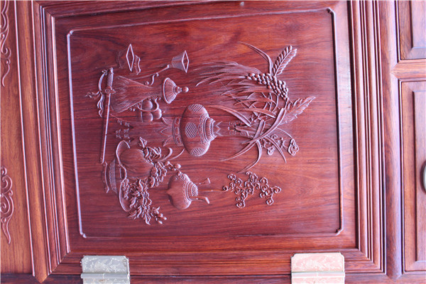雕刻首先是打坯。根據(jù)樣稿雕刻出雛形,要求要有層次感和立體感,掏、凹、拐、抹,要掌握紋理,尊敬木性,打坯細(xì)膩;然后是上細(xì)活,由手藝高超的雕刻技師在打坯的基礎(chǔ)上,根據(jù)對(duì)畫稿圖案的理解進(jìn)一步精雕細(xì)琢,完成整個(gè)樣稿的雕刻。