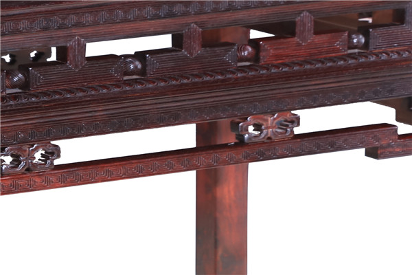 雕刻首先是打坯。根據(jù)樣稿雕刻出雛形,要求要有層次感和立體感,掏、凹、拐、抹,要掌握紋理,尊敬木性,打坯細膩;然后是上細活,由手藝高超的雕刻技師在打坯的基礎(chǔ)上,根據(jù)對畫稿圖案的理解進一步精雕細琢,完成整個樣稿的雕刻。